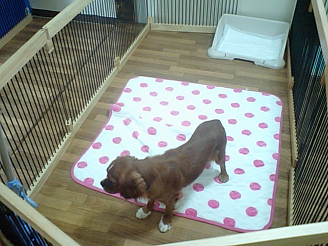 ヨーキーちゃんズが疲れたみたいなので、少しサークルで分けてます。