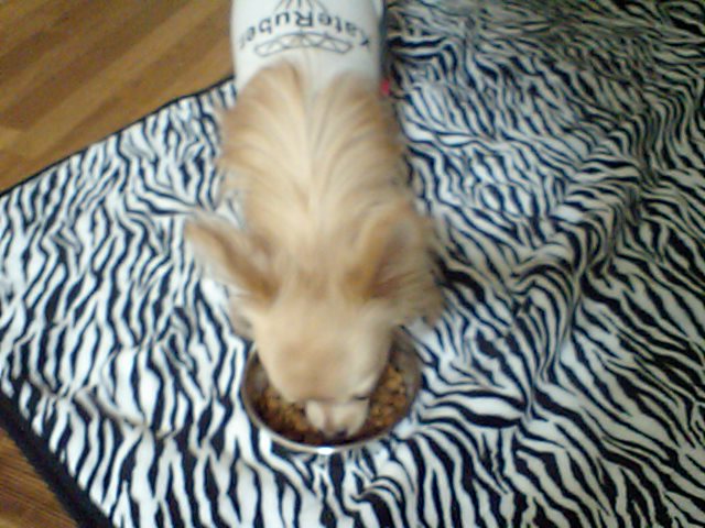 トイプーのアルチン君はご飯食べないです。遊べって飛びついてます。