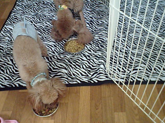 トイプーのスピカ君とセレス君は半分くらい食べました。カノンちゃんは口を付けません。