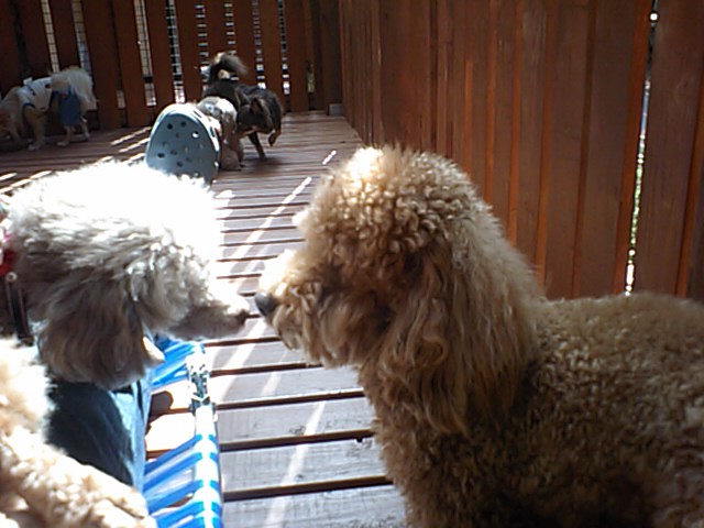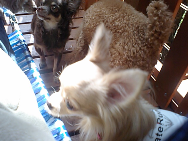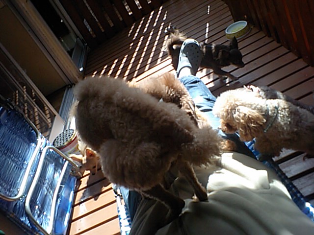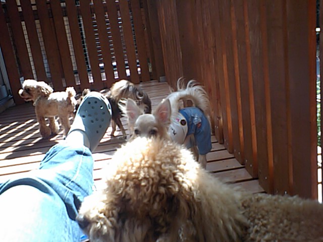 太陽が出てきて暖かくなったので、みんなでデッキでのんびりしてます。