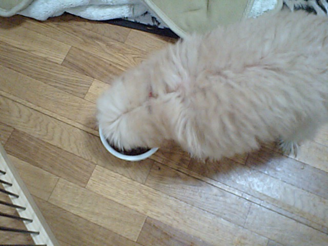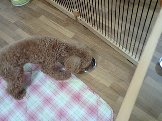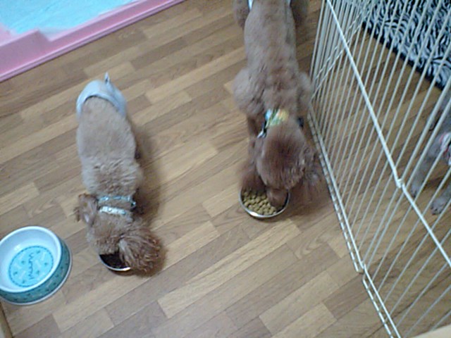 トイプーこむぎちゃんはすぐに完食です。トイプーく~君もすぐに完食。トイプーアルチン君は夕べのご飯は夜の内に完食で、今朝は食べないで遊んでます。
