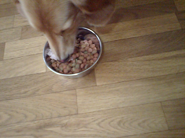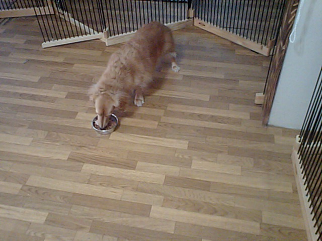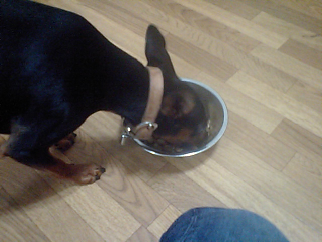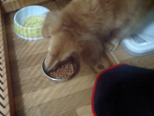 ダックスハッピー君はご飯を最初はひっくり返そうとしてました。でもそれからすぐに食べ始めて完食してます。