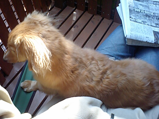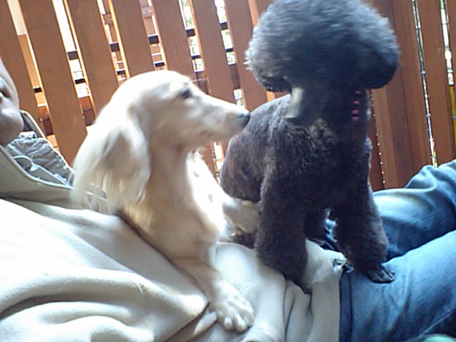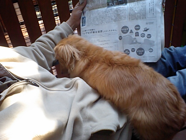 のんびりしたいな~と思っていた店長でしたが、ダックスモモちゃんとトイプーキラリ君が膝の上の争奪戦を始めちゃいました。二匹が膝の上でバタバタすると、店長はゆっくり新聞読んでなんて出来ないよ…。