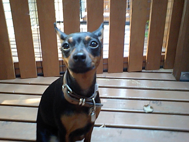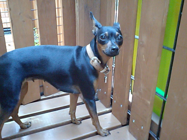 ミニチュア・ピンシャーのライちゃんがチェックインしました。8月にも来てくれたんだよね。