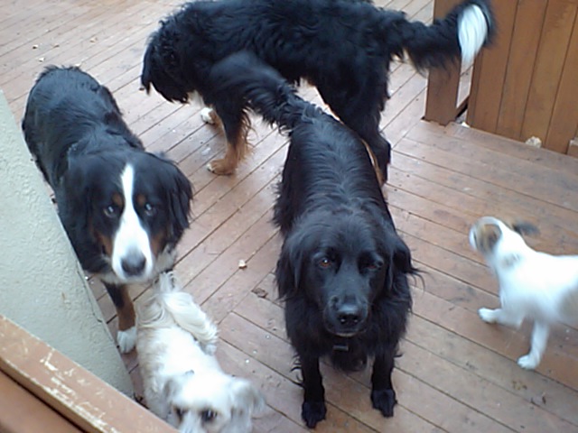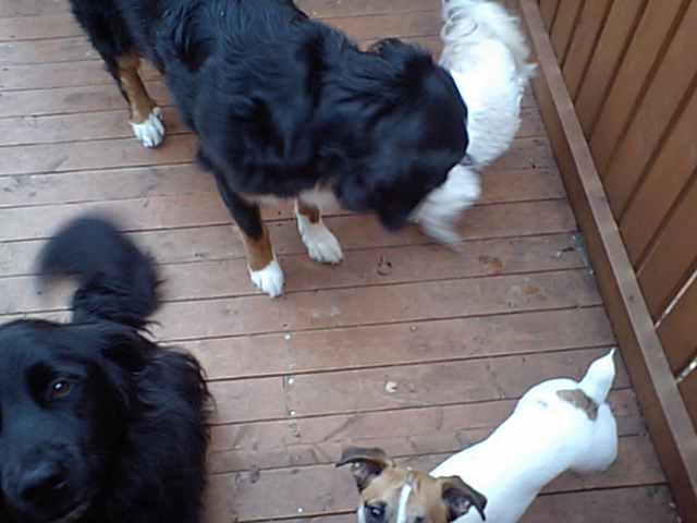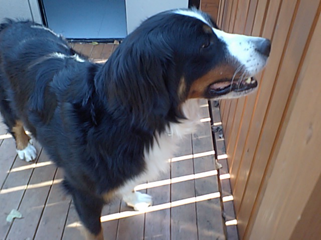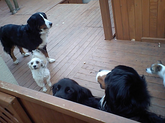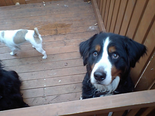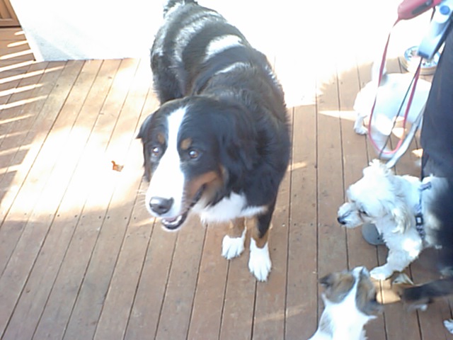 バーニーズのマリンちゃんとミックスのベリーちゃんもダディーに慣れたみたいです。 まだベリーちゃんはイマイチかな?