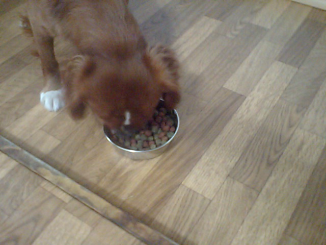 朝ご飯があるのはキャバリア大吉君だけ、すぐに完食しました。