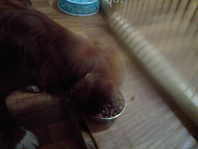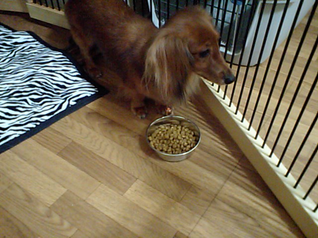 ダックスちゃんはご飯に口を付けません。シャンプーしてすぐだったので食欲がないかな? 置いたままにしておきます。