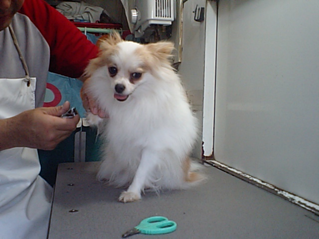 さて、パピヨンちゃんはこれから洗って貰う所です。 先ずは爪切りとブラッシングしてます。 綺麗にして貰ってね(‘-^*)/