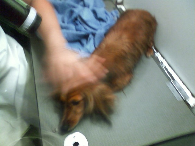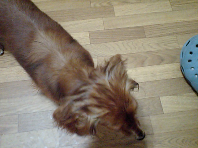 昨日シャンプーしたパピヨンちゃんとダックスちゃん、今朝見てみたらサークルの中で水をひっくり返してビチャビチャに。 Y(>_<、)Y パピヨンちゃんは何とか乾かしたんですが、ダックスちゃんは抱かせてくれないので… まだ後頭部が少し濡れてます。 (・_・;)