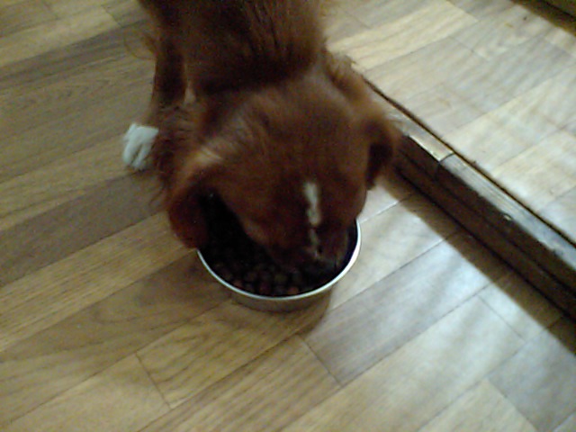 シーズーラッキー君はたちまち完食、キャバリア大吉君もすぐに完食しました。