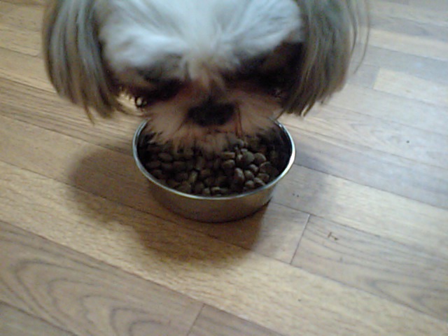 パピヨンちゃんは食欲があり、何故か食器から奥に一粒ずつ持って行って食べてます。