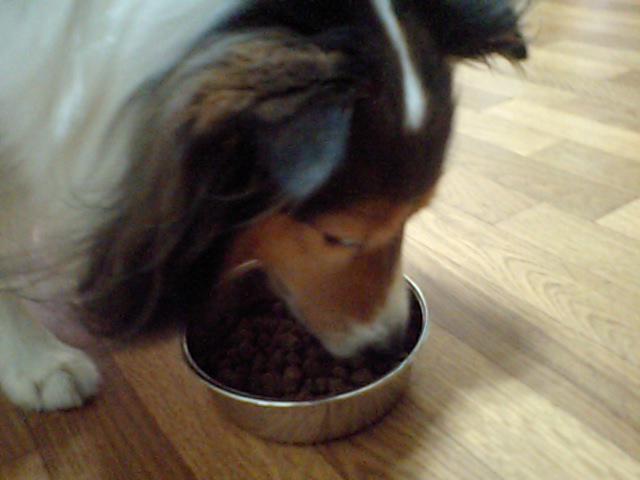 シェルティーラッキーちゃんも良いペースで完食しました。 三枚目の画像は、ご飯を食べまくるWラッキーちゃんです。