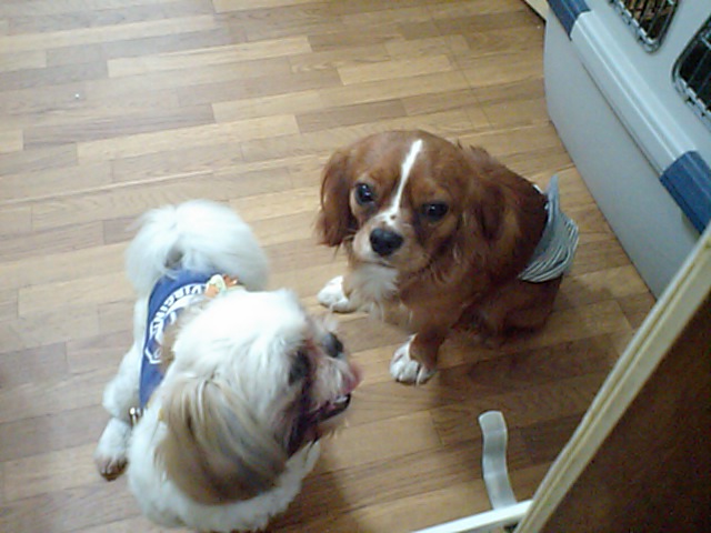 ラッキー君はキャバリア大吉君が大好きな様子、でも少し落ち着いたみたい。