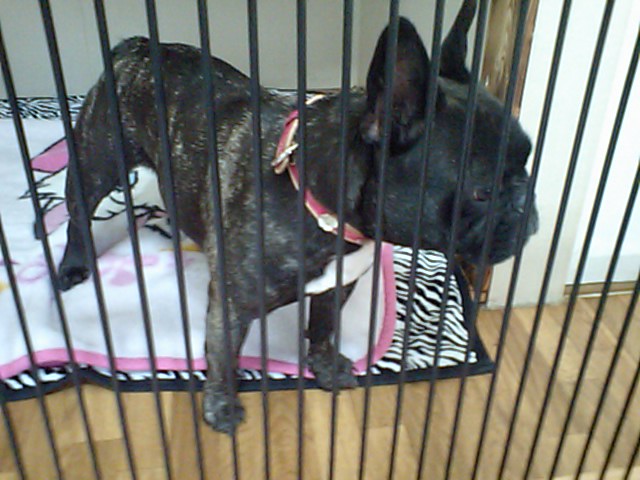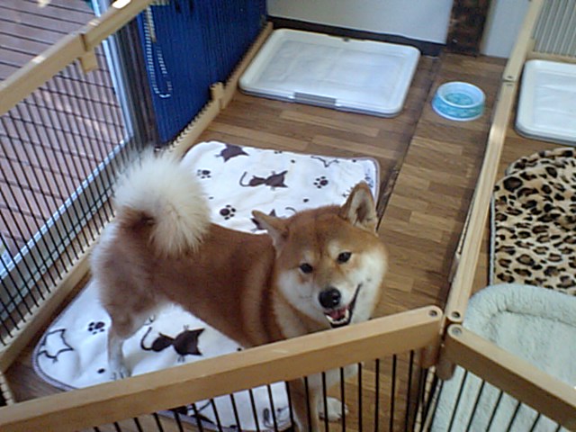 他のワンコが苦手だからいつもサークルの中だけど、段々とダディーの雰囲気にも慣れてくれたかな?飼い主さんと離れての、寂しがり方が少しはマシになった気がします。
