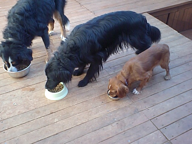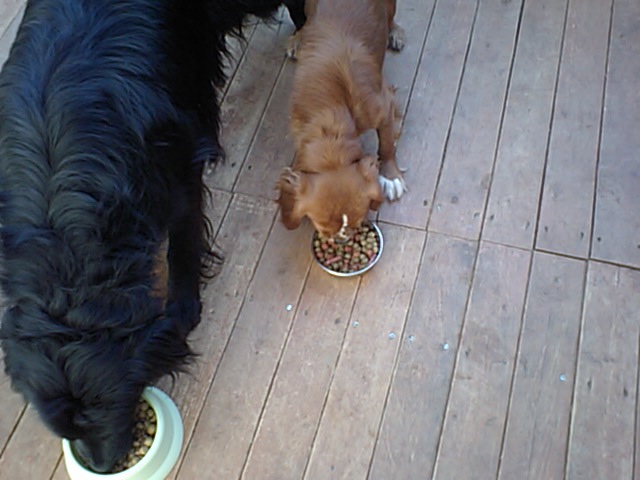 キャバリア大吉君は大型犬と食べるとご飯が進む、取られまいって思うんでしょうな?