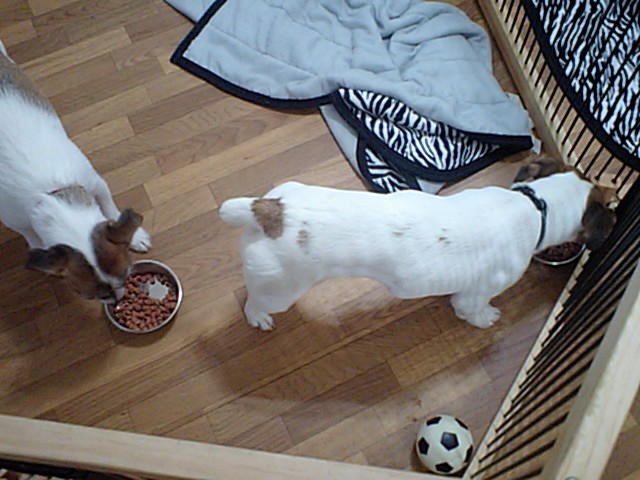 ジャックラッセルずのピン君とリキ君、またまた揃って完食してます。