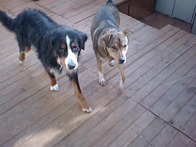 スタッフIが店長の愛犬のバーニーズのバーと、なんちゃってフラットの大治郎をお散歩に連れ出してくれました。
