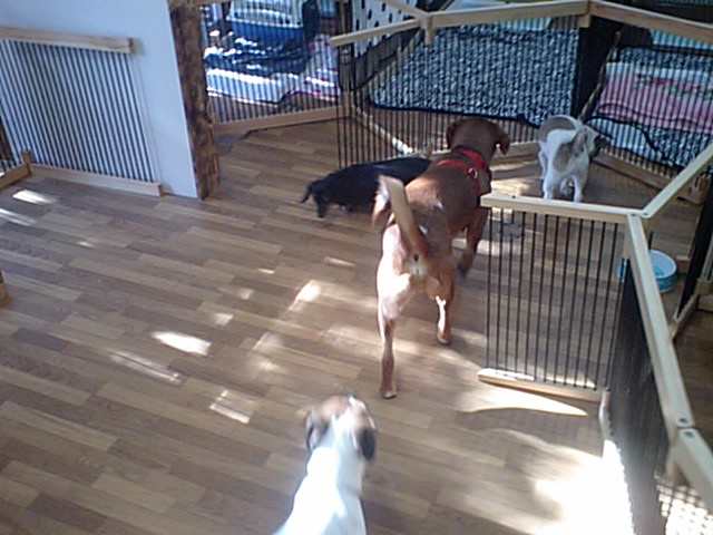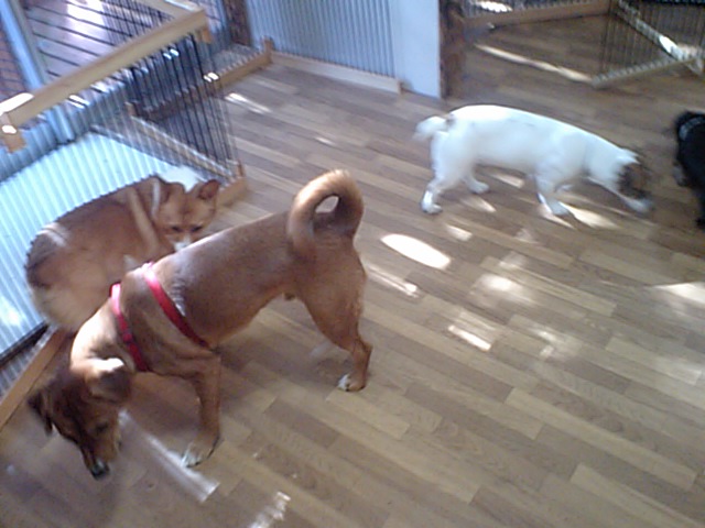 飼い主さんが居なくなってしばらくはヒュンヒュン鳴いていましたが、しばらくしたらサークルから出てみんなと仲良くし始めました。
