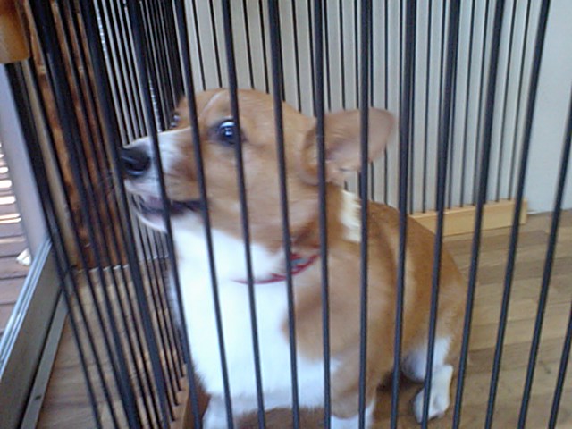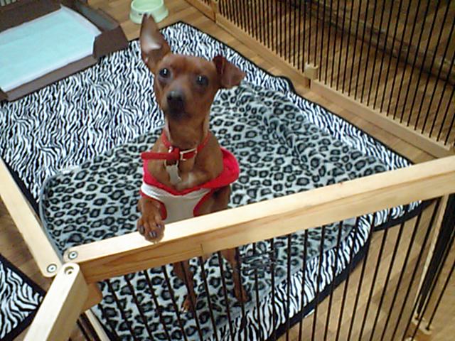 他のワンコが大好きとの事ですが、もう寝る時間だからサークルの中で残念。明日はみんなと遊んでな。