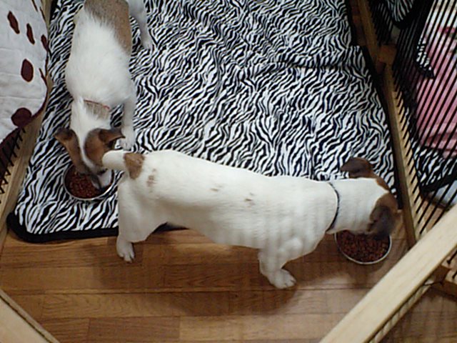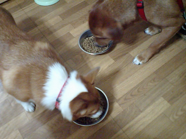 ジャックラッセルずのピン君リキ君、この二匹は相変わらずすぐに完食です。