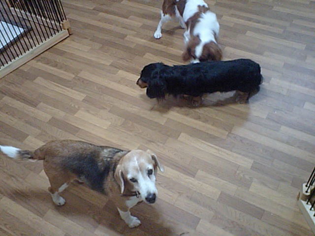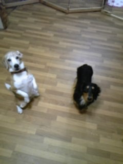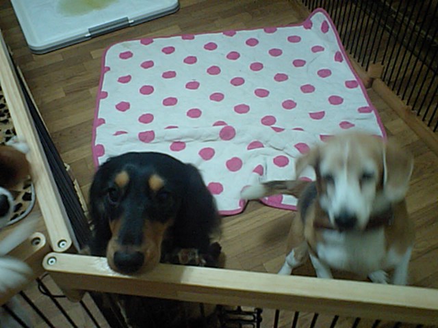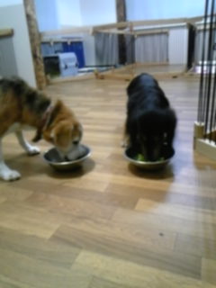 今夜はビーグルのビーちゃんとダックスのマローヌ君がお泊まり、二匹ともちゃんとご飯を食べましたよ。