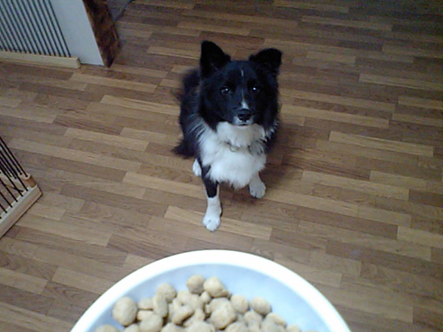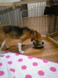 ボーダーコリーのサエノスケ君、朝ご飯は300mlくらい食べました。