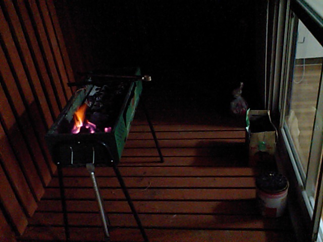 店長は炭をおこして、女性陣は材料を切り込んで準備中です。