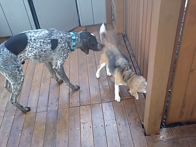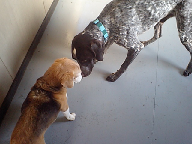 ジャーマンポインターのモス君ともいきなり仲良しになってます。