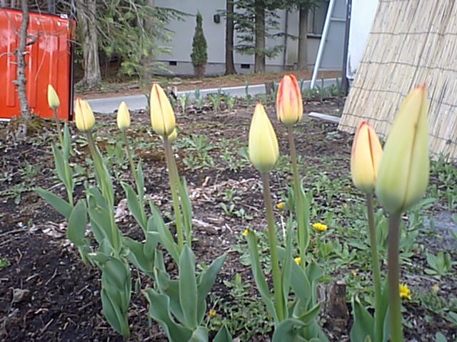 今朝は桜ネタでしたが、今回は? チューリップネタです。 昨年の秋?お客様から分けていただいた、チューリップがもうすぐ咲きそうです。今日はお天気も良く暖かかったので、今日中には花が開くかと思ってました。が、夕方でもこんな感じ。