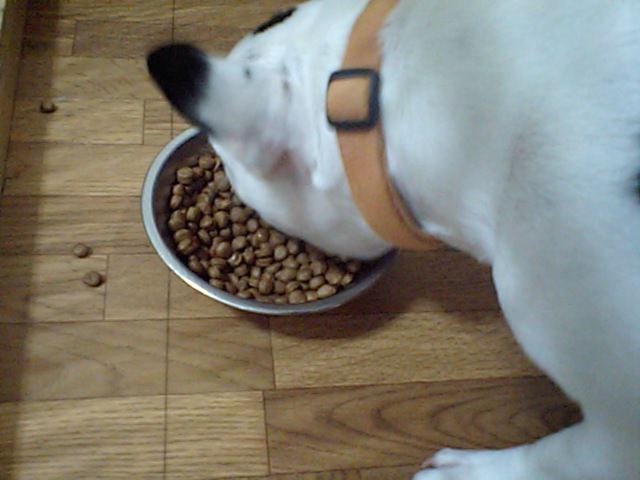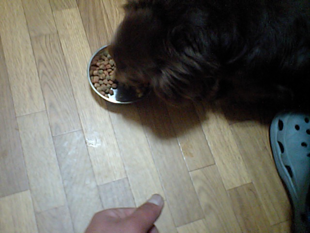 ダックスのビリー君。催促する程の食欲で、たちまち完食です。