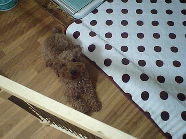 ハナちゃんも夕方にはチェックアウト。 夕方からは別のトイプーちゃんがチェックインしますが、またまた小型犬エリアに独りぼっち。