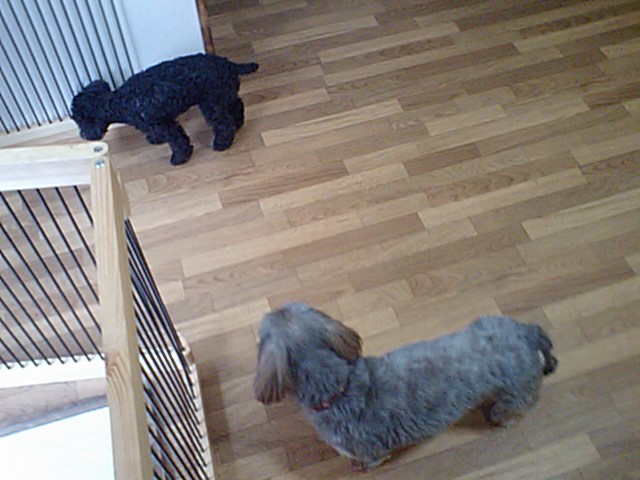 ミックスのチャチャちゃんとトイプーのハナちゃんだけの淋しい状態に。今はミックスのチャチャもチェックアウトして、ハナちゃんは店長にべったりです。