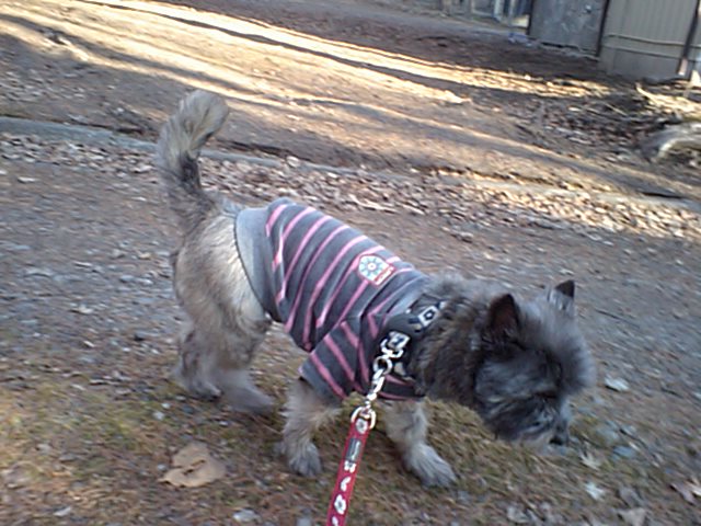 朝のケアンテリアのチッピちゃん、元気におさんぽしましたよ。