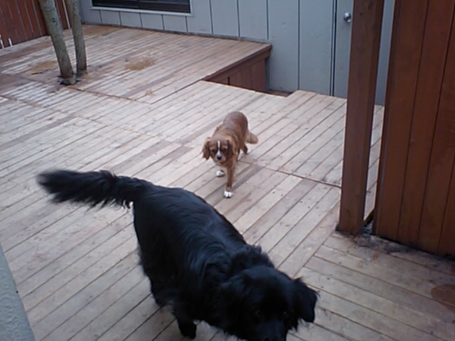 キャバリア大吉君とイングリッシュポインターのモス君が合流。