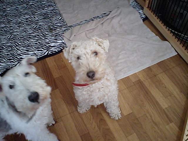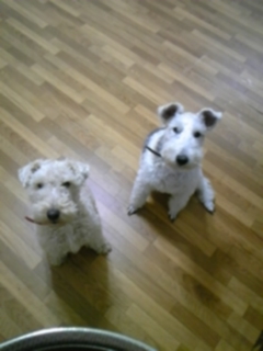 レイクランド・テリアのビビちゃんと、ワイヤー・フォックステリアのムージャンちゃんがチェックインしました。