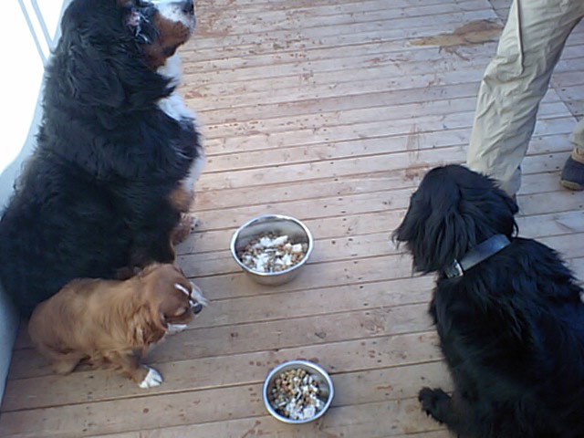 食べるのが遅いバーニーズのご飯を、物欲しそうに眺めてました。