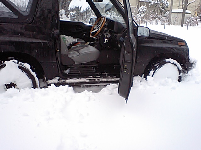 ca3267c2.JPG今朝の軽井沢のは雪景色です。積雪は30~40センチ位でしょうか? 吹き溜まりはもっと積もってます。クロカン四駆でも下手に入るとスタックするかも?