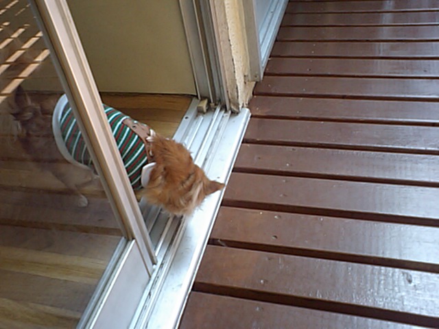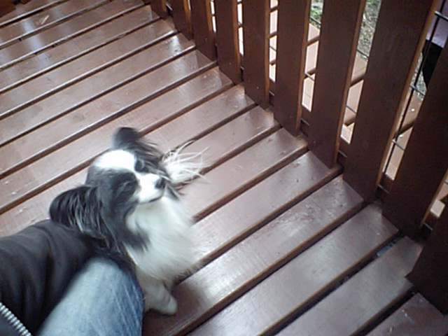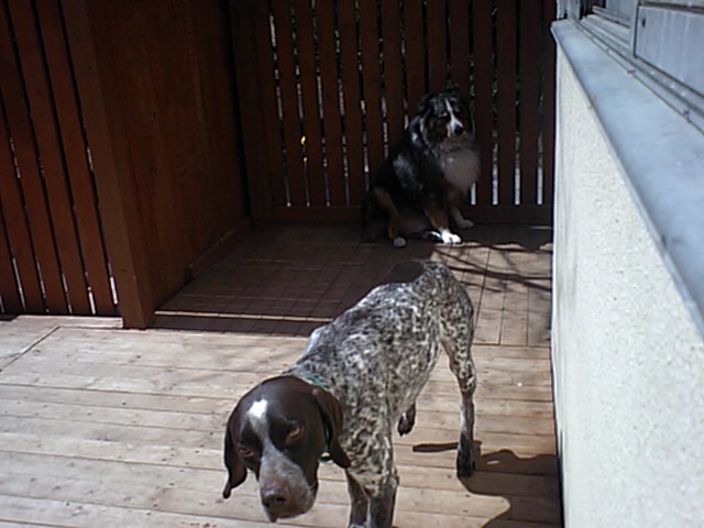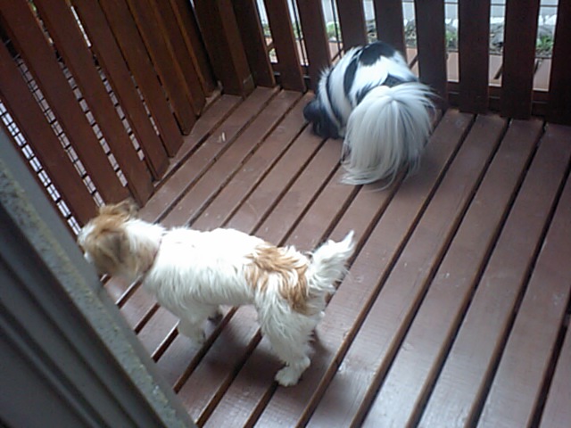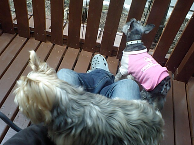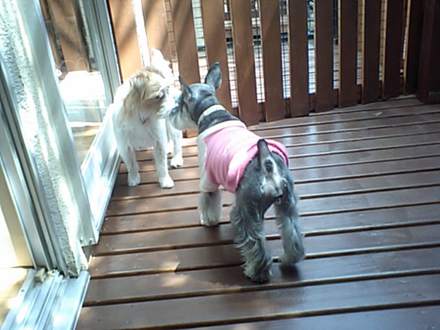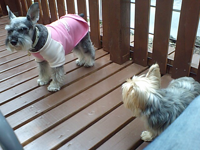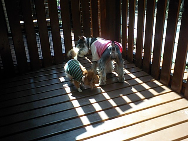 デッキでシュナウザーのラッキーちゃんと遊んでました。