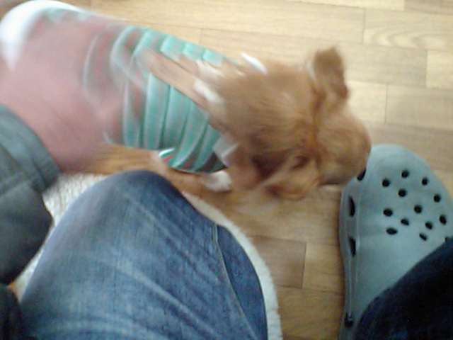 ダックスちゃん達が居なくなったら、チワワのカノンちゃんがサークルから出てきました。