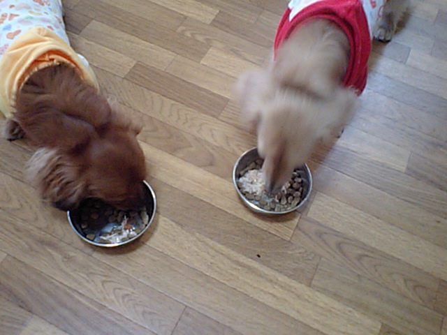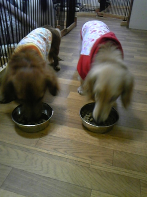 ケアンのチッピちゃん、完食しました。 ダックスちゃんズも凄い勢いで食べ終わりました。