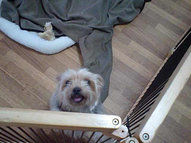 ヨークシャーテリアのニコちゃんがチェックインしました。最初は飼い主さんを探してましたが、その内に店長の膝の上に…。みんなとも仲良くしてますよ。