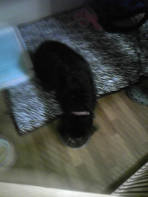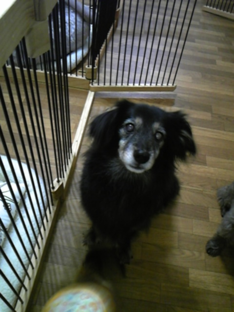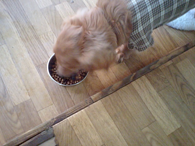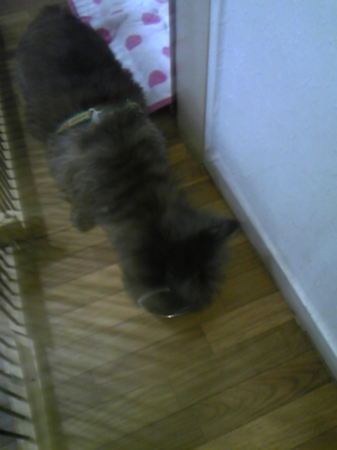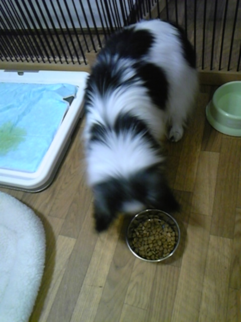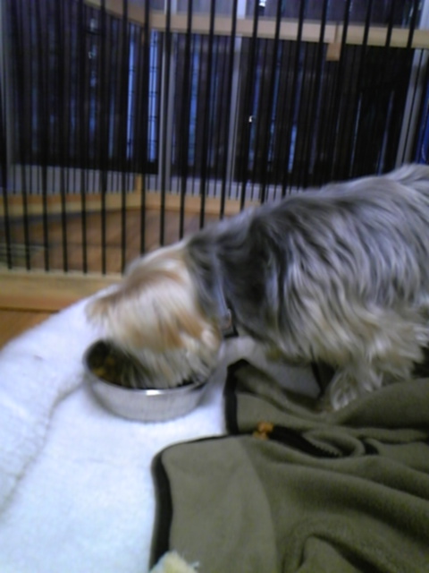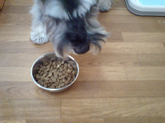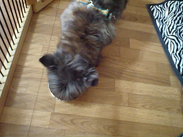 シュナウザーのラッキーちゃん。夕べのご飯も食べてあって、朝ご飯もしっかり食べました。