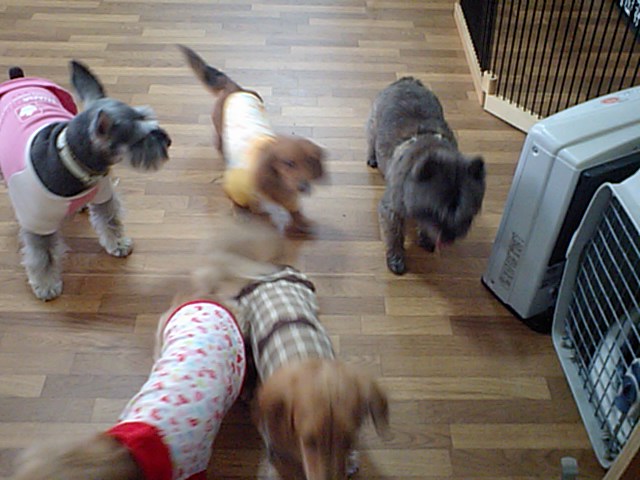 ダックスちゃん達とチワワちゃんはチェックアウトしましたが、ご飯の後の遊んでいる風景です。