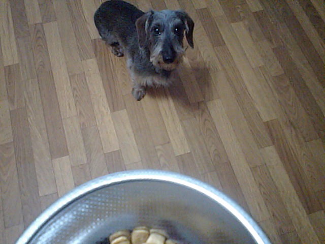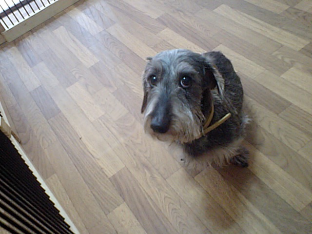 ワイヤーヘアードのダックスウィル君がチェックインしました。ウィル君は去年の秋にもお泊まりしてるので、既に『勝手知ったる』状態。店中の匂いを嗅ぎまくってます。