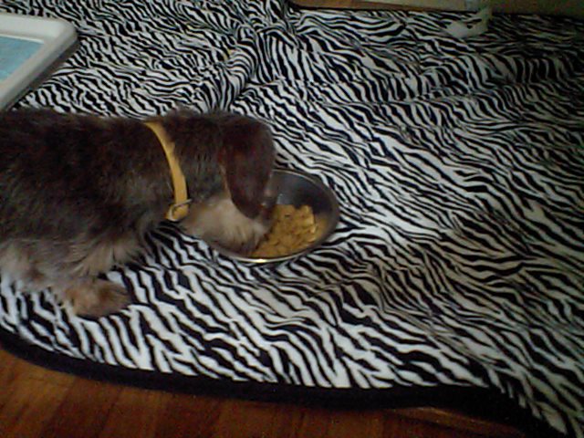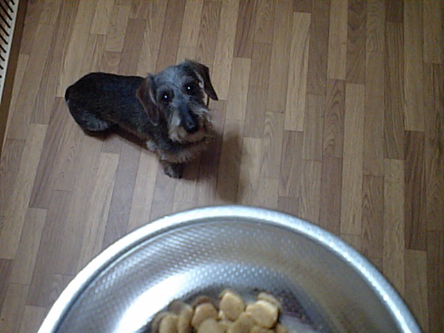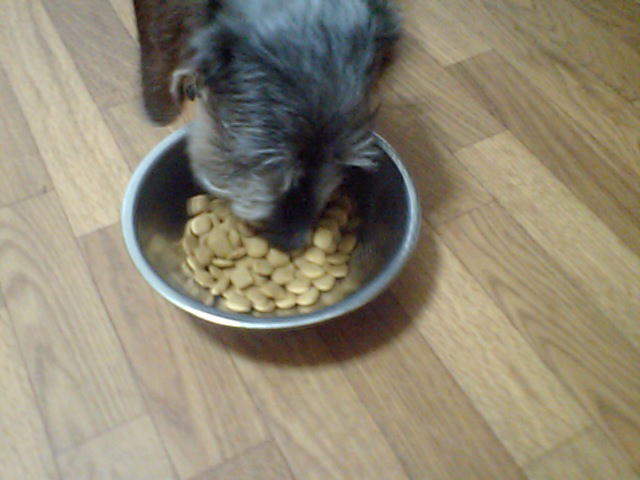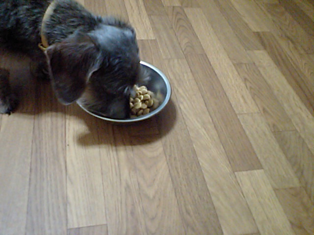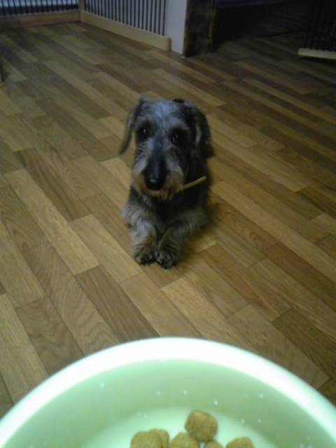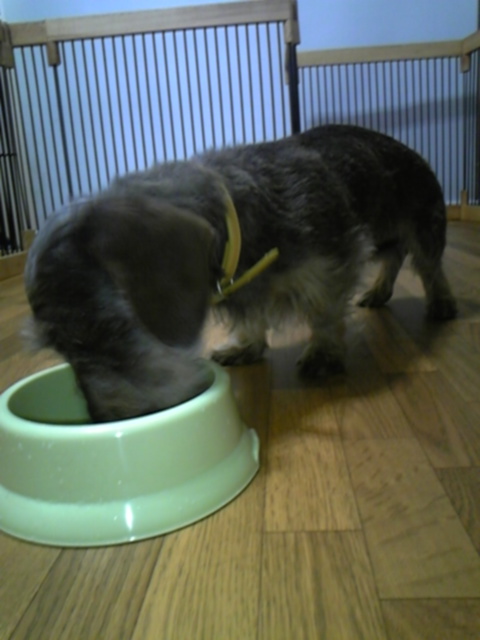 ダックスウィル君、晩御飯もたちまち完食してます。
