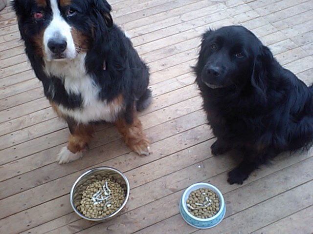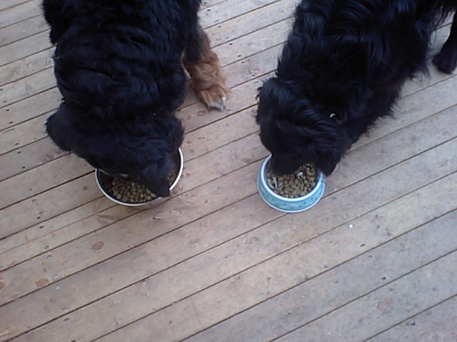 夕べはウィル君以外のお泊まりが居なかったので、店長のバーニーズとフラットも登場。完食してます。