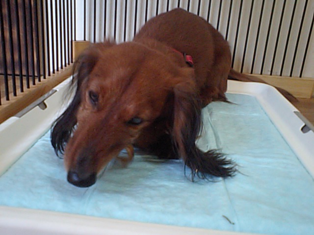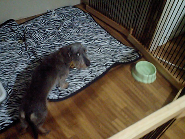 昨日、他の預かりのワンコ達が帰って、一人ぼっちになったダックスウィル君です。やはり寂しいかな?たまに遠吠えしてます。