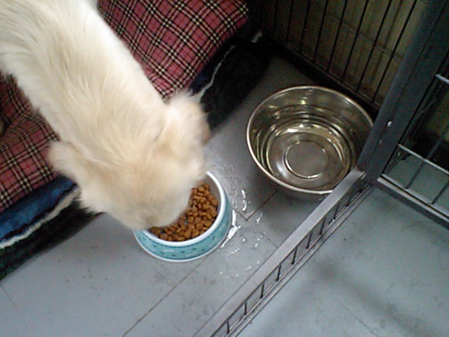 ゴールデンのオリーブちゃんもたちまち完食です。雨なのでサークルの中に居てもらってます。外に出すとびしょ濡れになってしまうので…。