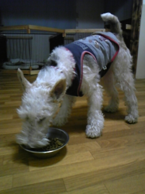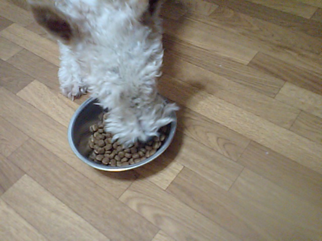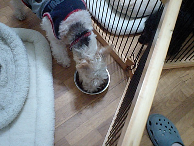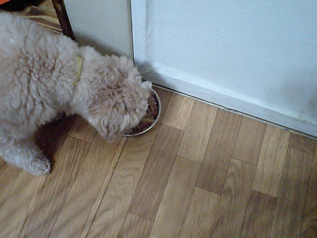 トイプーのキキちゃんは夕べは完食してました。今朝は少し口を付けただけです。