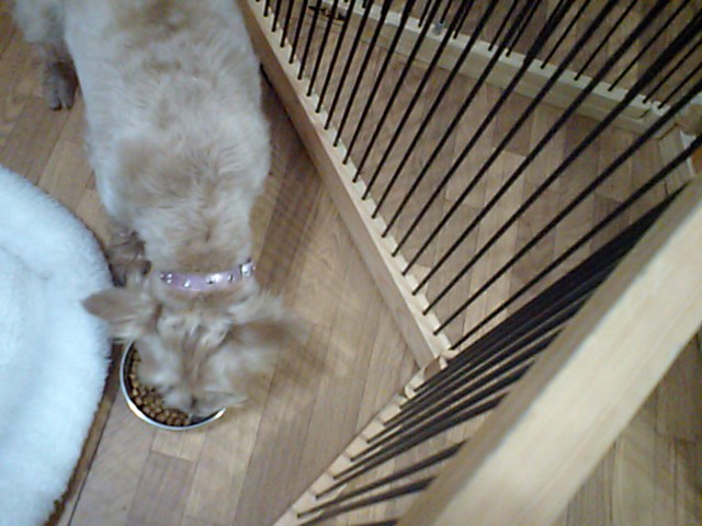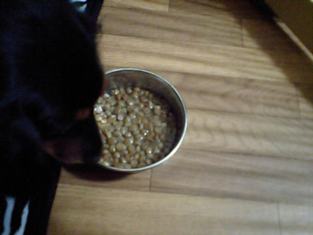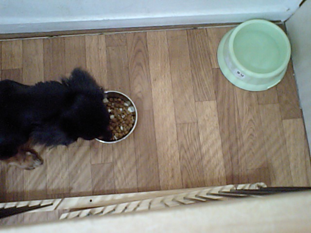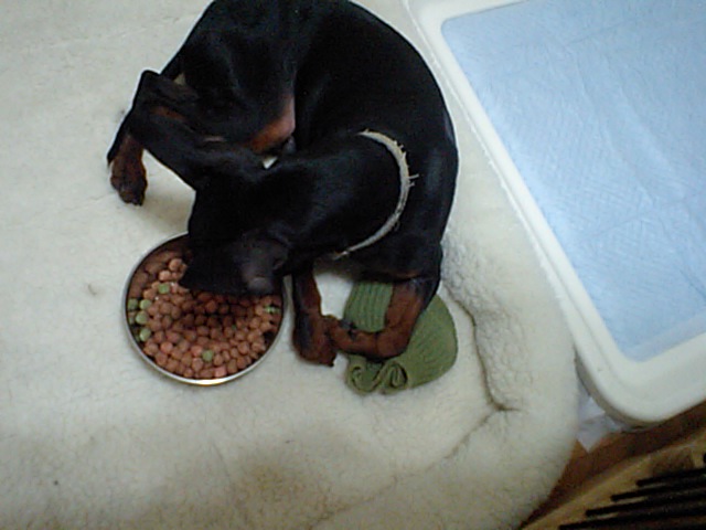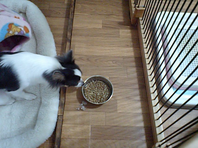 ダックスのブーちゃんはチーズを拾って食べて、フードは半分くらい食べました。